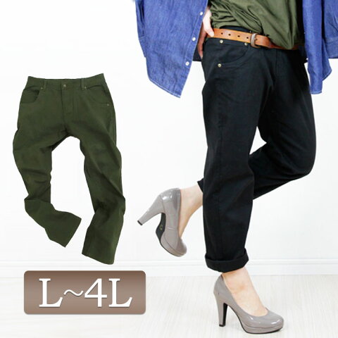 伸縮性バツグン! 大きいサイズ レディース ボトムス パンツ ロングパンツ ロング丈 長ずぼん シンプル 無地 チノパン 春服 夏服 秋服 冬服 春夏 秋冬 ポケット付き ぽちゃかわ お洒落 L LL 2L 3L 4L XL XXL Lサイズ LLサイズ 11号 13号 15号 17号 ブラック 黒 black カーキ