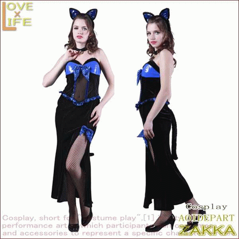 フラッシュブラックキャット Ladies♪暗闇でコスチュームが光るフラッシュシリーズ!ロングスカートのスリットから美脚がチラリ☆AOIデパートのコスプレシリーズ♪【コスプレ】【衣装】【コスチューム】【ハロウィン】【2.980円以上送料無料】【大人気】【大大人気】【5 】